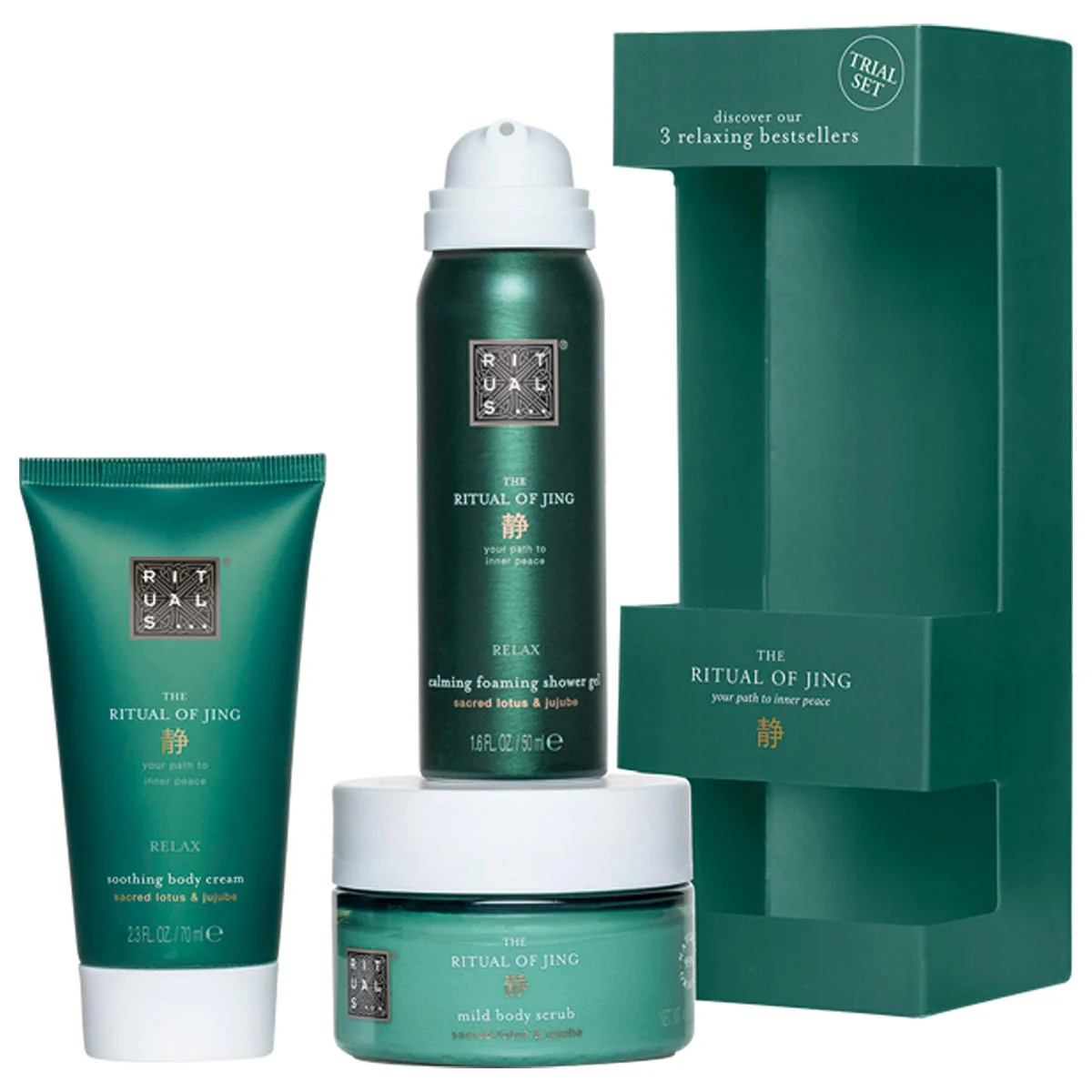 RITUALS The Ritual of Jing 3 Relaxing Bestsellers est un coffret idéal pour découvrir l’univers de Rituals, ce coffret cadeau réunit un trio de best-sellers, tous enrichis d’ingrédients apaisants de lotus sacré et de jujube.